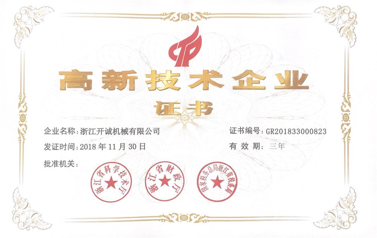 高新技术企业证书
