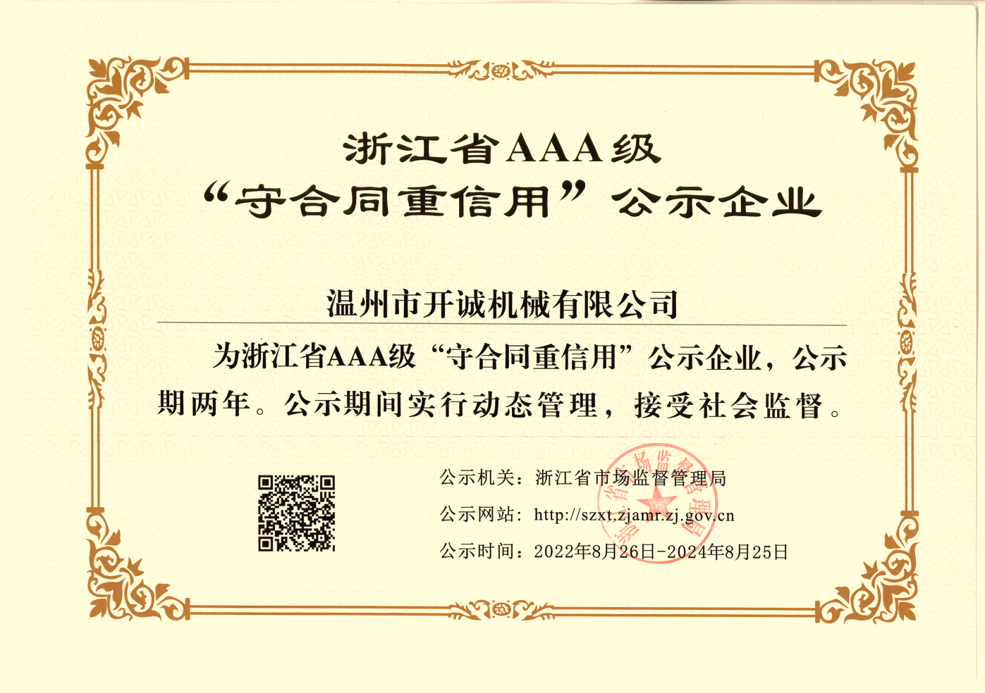 2022年AAA守合同重信用证书