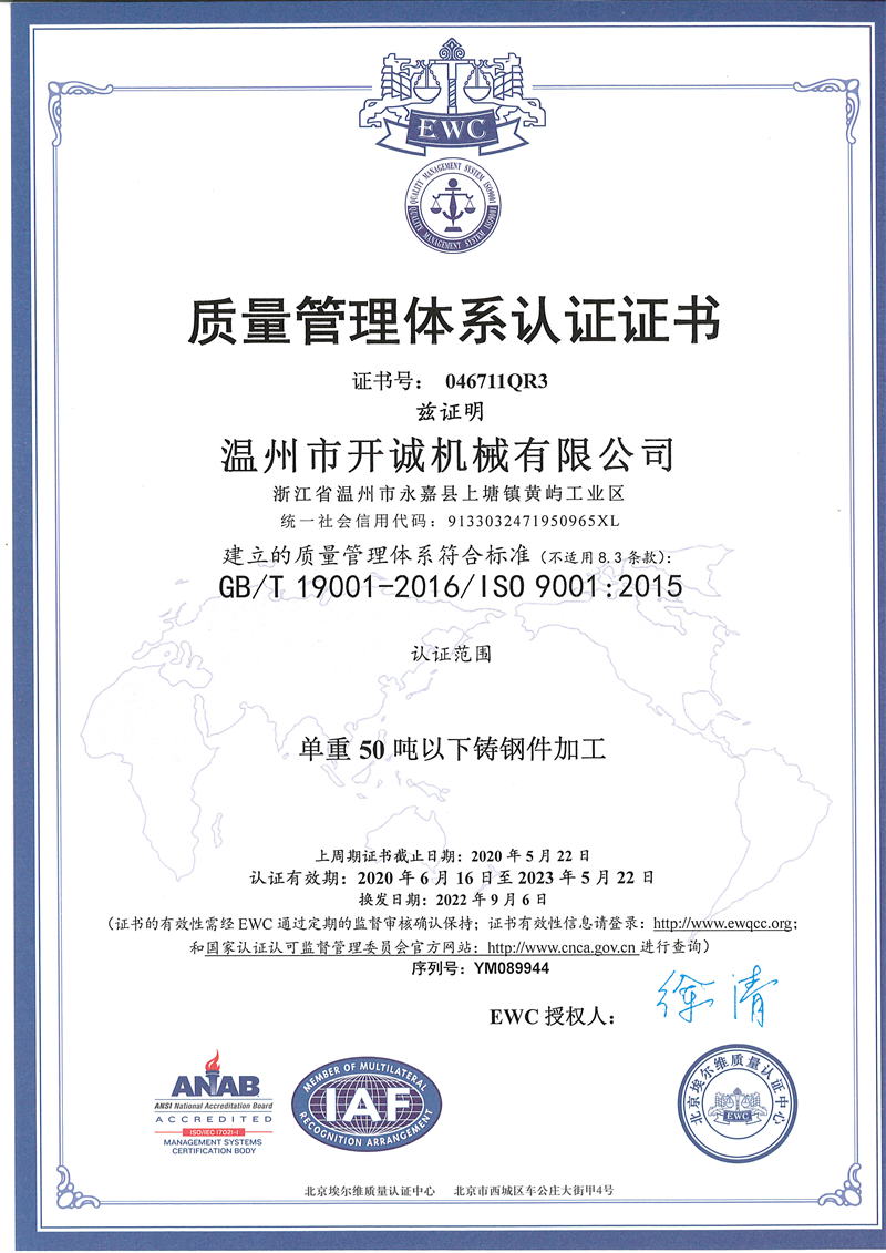 质量管理体系认证证书(温州)