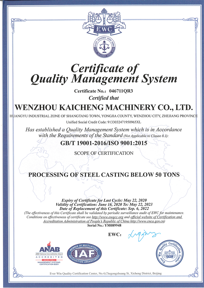 质量管理体系认证证书(温州)